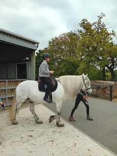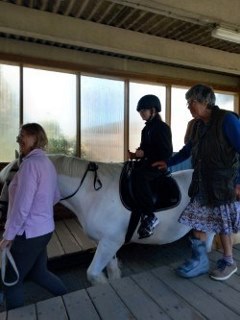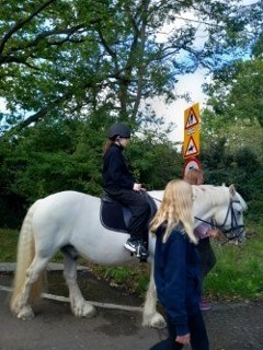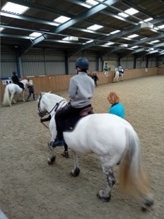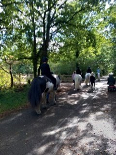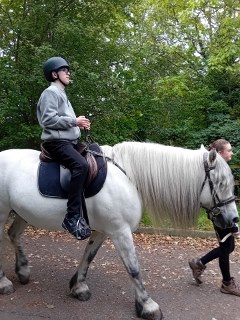 The session started with practising trotting in the arena and then progressed to a leisurely hack through the forest, which they will do each week.