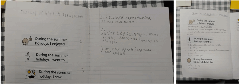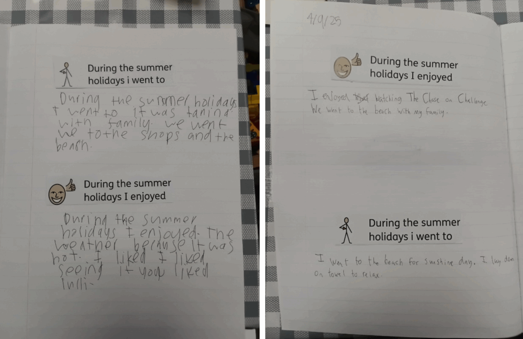 Lantern have been working really hard on their Literacy work this term, thinking about expanding their sentences, being descriptive and developing their handwriting. They would like to share their writing about their summer holidays, which not only was detailed and reflective, it was presented beautifully. Well done Lantern!