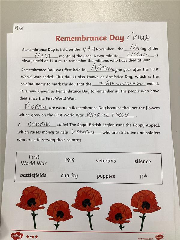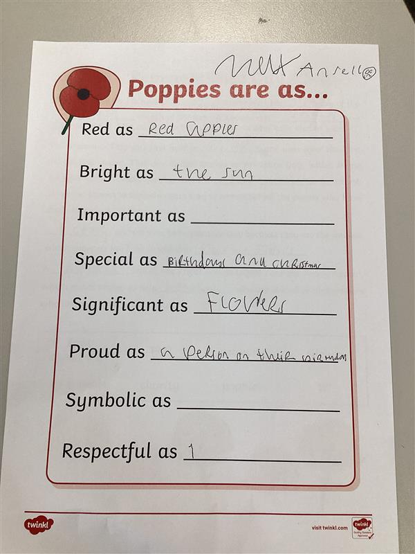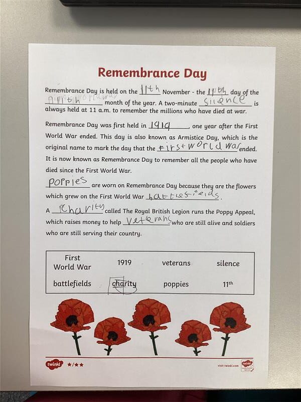 Across the school we honoured the two minute silence at 11am. It was with pride we heard of Lantern Class being so respectful and reflective during this, following their learning about the impact on children evacuees in World War II.