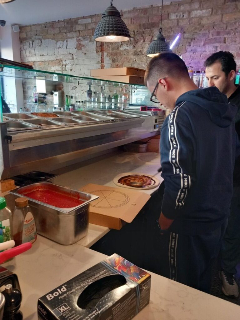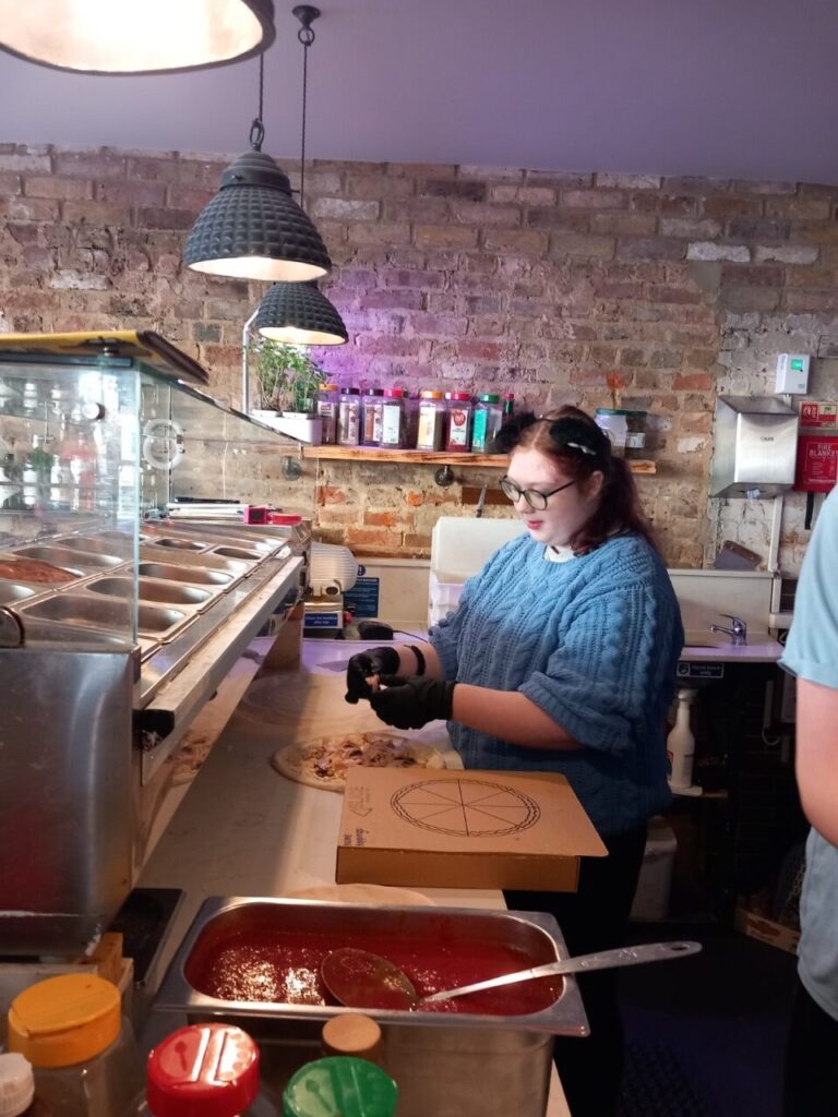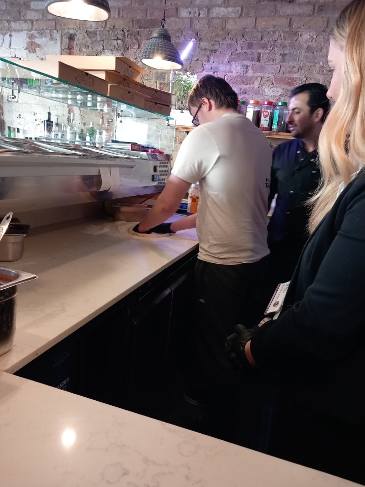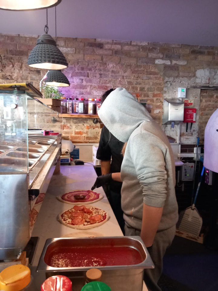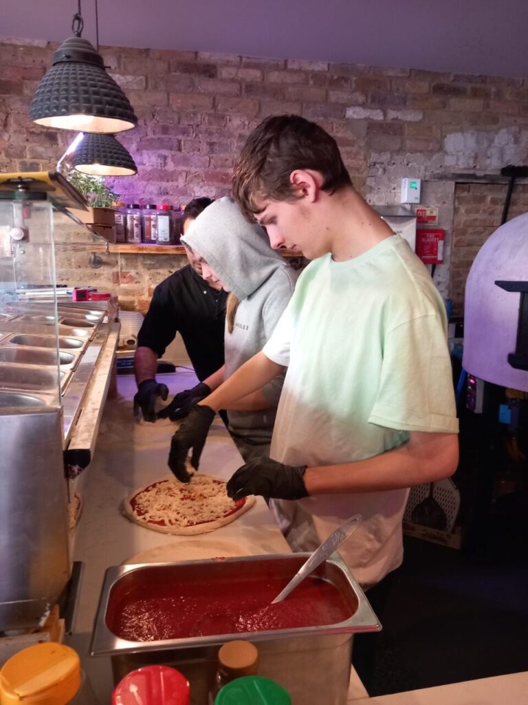 For the second part of the day, pupils visited Slice which is a local, independent, family-run pizza restaurant in Epping for a hands-on cooking experience. Staff welcomed the pupils into the kitchen, where they learned how to stretch dough, add sauce, and choose toppings to create their own pizzas.