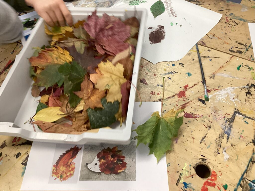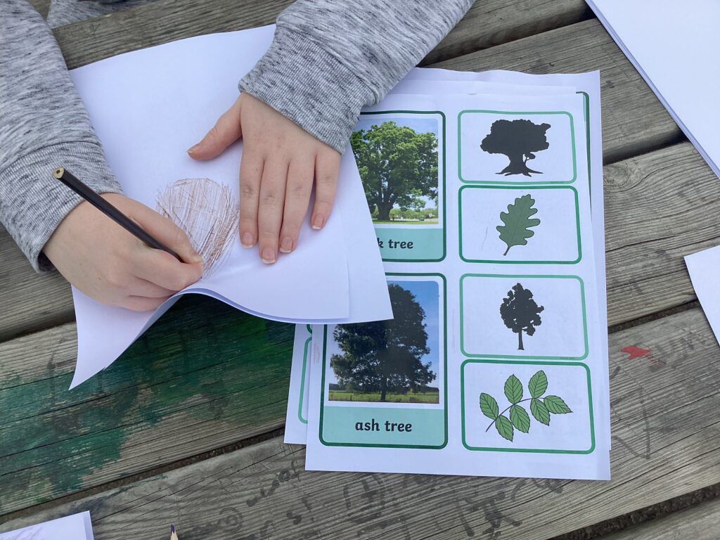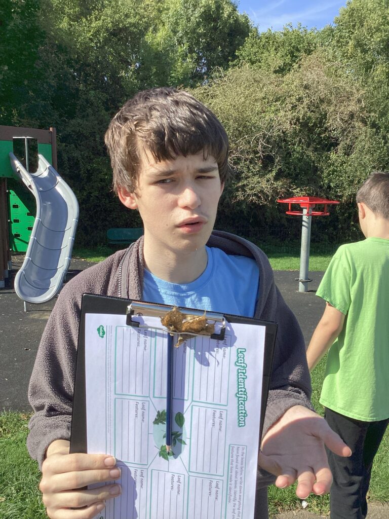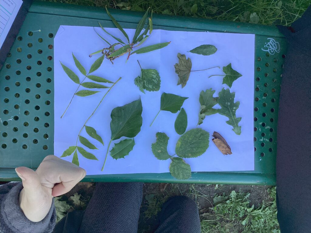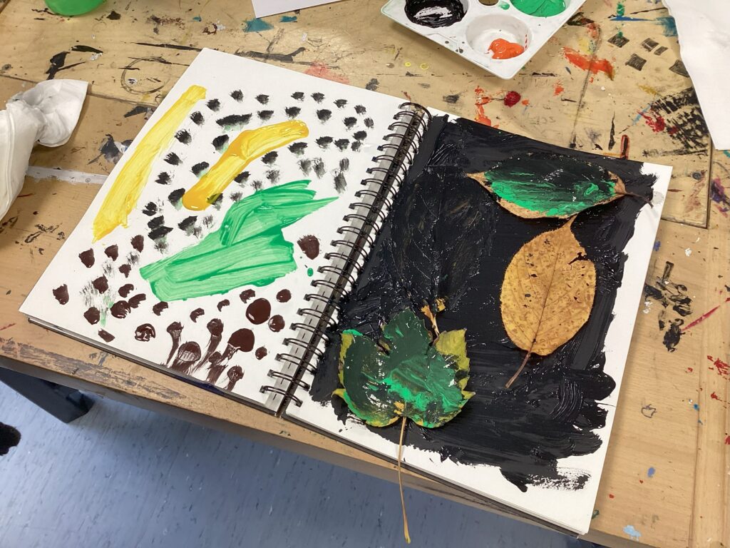 So far they have been identifying and classifying different leaves and trees around them in the natural area and have begun to use what they find to express themselves artistically.