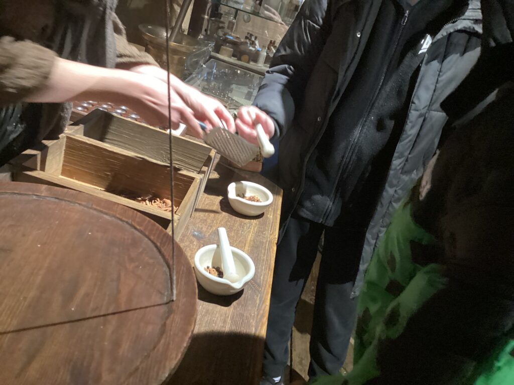 The pupils most enjoyed climbing the tiny steep wooden staircase to reach the operating theatre and even attended a lecture on what procedures used to happen there. They made their own ‘medicine bags’, with herbs that they ground up themselves.